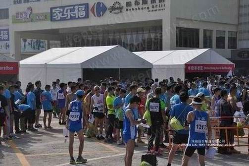 在2012年珠海国际半程马拉松比赛的体育帐篷供应商和赞助商海丽日帐篷